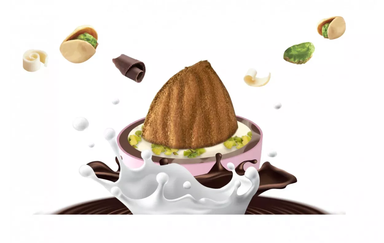- Gusto: Mandorla tostata, cioccolato bianco, cioccolato al latte e granella di pistacchio.