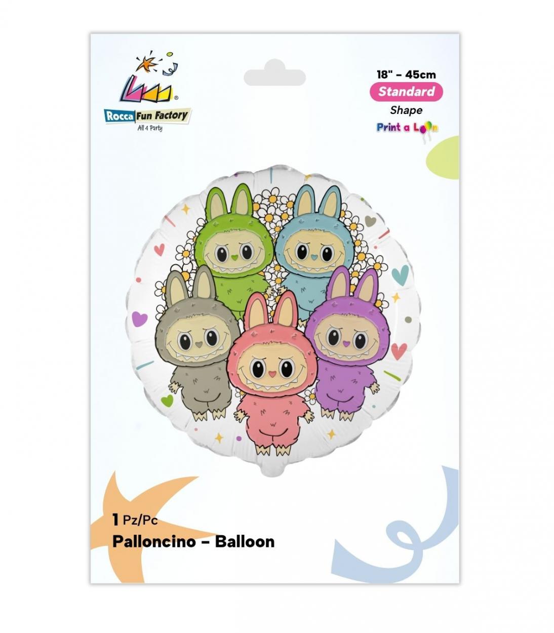 Offri ai tuoi clienti un articolo per feste che fa tendenza con questo palloncino foil rotondo da 18 pollici (circa 45 cm) con i personaggi della Angry Bunny Family. I cinque coniglietti mostruosi e divertenti, dai colori vivaci (verde, azzurro, grigio, rosa e viola), sono l'ideale per feste a tema, compleanni alternativi o eventi originali.