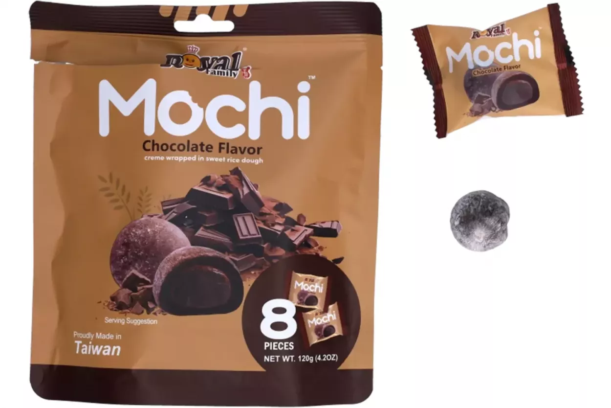 I Mochi Royal Family al Cioccolato rappresentano una rivisitazione del classico dolcetto giapponese con un gusto universale e amato. La tradizionale pasta elastica di riso glutinoso (mochi) avvolge un ripieno ricco e cremoso al sapore intenso di cioccolato e cacao. Questi dolci offrono un contrasto perfetto tra la morbidezza esterna e il cuore fondente. Ideali per chi cerca uno snack etnico ma dal sapore confortante e familiare. La confezione contiene 8 pezzi (120g).