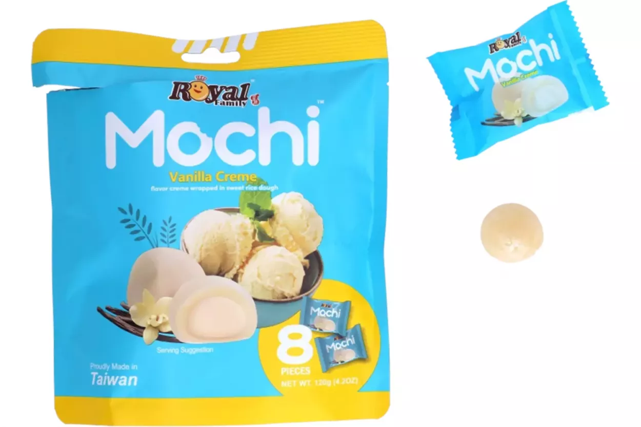 Introduci nel tuo assortimento l'esotismo e la dolcezza dei Mochi Royal Family alla Crema di Vaniglia. Questi dolcetti tradizionali giapponesi offrono un'esperienza sensoriale unica: un morbido involucro di pasta di riso glutinoso racchiude un ripieno cremoso al gusto di vaniglia. Confezionati in pratiche buste da 120 g (contenenti 8 mochi singolarmente incartati).